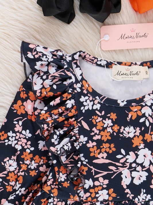 Mom & Me Black & Bronze Floral Ruffle Dress